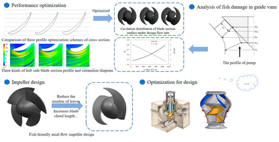 In order to improve the survival rate of fish after flowing through the flow channel of the pumping station and reduce the impact of NPP construction on the marine ecological environment, experts and scholars have improved the survival rate of fish by optimizing design and other measures. Figure 1 shows the main measures to improve the survival rate of fish after flowing through the flow channel of the pumping station.