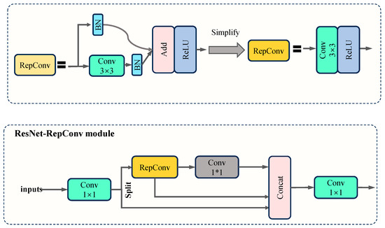 Through this re-parameterization strategy, RepConv maintains a relatively complex multi-branch structure during training for enhanced feature learning and condenses these operations into a single branch during inference. Consequently, the network benefits from richer representational capabilities while minimizing the computational burden in real-world deployment.