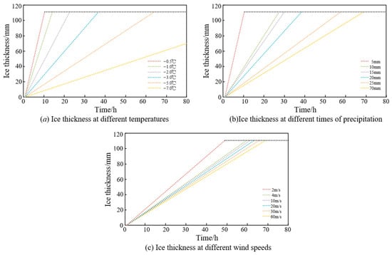 According to the simplified Makonde ice accumulation model in the literature [46], the time-varying process of ice accumulation of a single turbine can be expressed by Equations (2)–(4) by extracting the meteorological data and the actual output data under the ice-covered conditions of the wind farm.