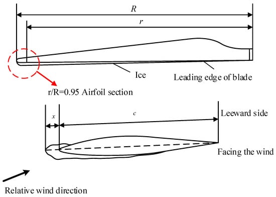 Figure 7. Schematic diagram of ice thickness at the blade leading edge.