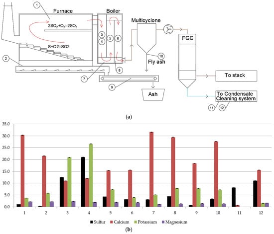- Davidsson, K.O.; Åmand, L.-E.; Leckner, B. Potassium, Chlorine, and Sulfur in Ash, Particles, Deposits, and Corrosion during Wood Combustion in a Circulating Fluidized-Bed Boiler. Energy Fuels 2007, 21, 71–81. [Google Scholar] [CrossRef]