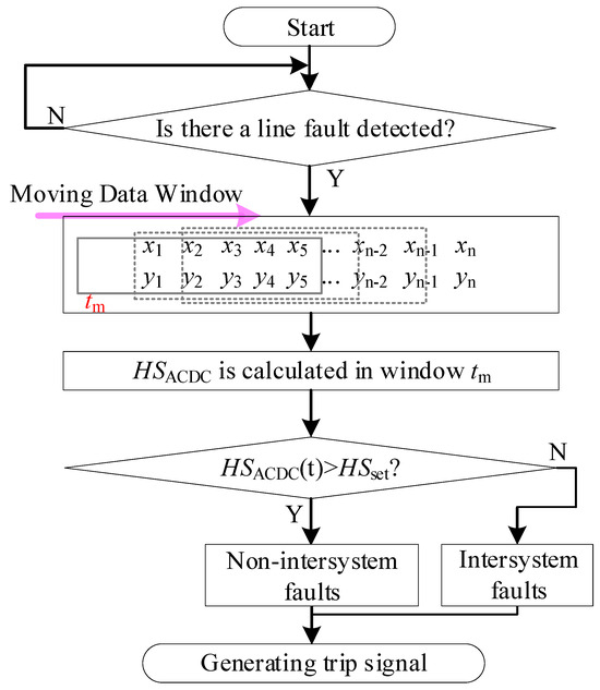 The protection time window is . After the fault time is located, the data 1 ms before the fault and 4 ms after the fault are intercepted for fault identification. The flow of the protection scheme is shown in Figure 5.