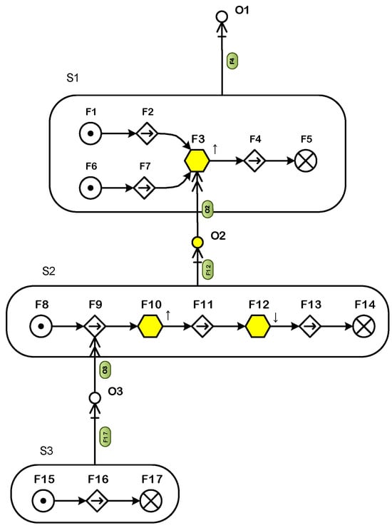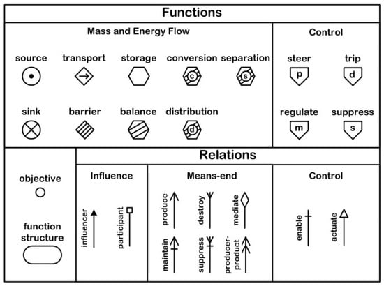 In recent years, Professor Morten Lind has further expanded the MFM framework to encompass descriptions of control functions [32]. This expansion includes the introduction of various Means–End, Control, and Influence relationships, which allow the MFM to effectively model and describe system actions and interactions. These relationships illustrate how different functions can influence one another and how specific actions can lead to desired outcomes within a system.
