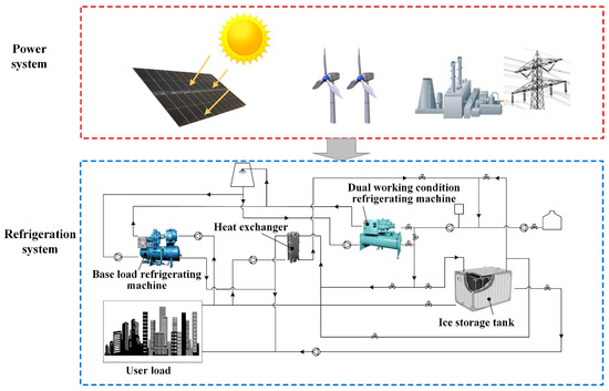 In the future development of the ice storage system, mathematical modeling and software analysis methods will be employed to predict the user side of the required cold load while calculating the ice storage system in different periods of ice storage and ice melting rate. This approach can facilitate the establishment of a feedback loop between cold storage systems and user demand. The system determines whether it is necessary to adjust the cooling capacity based on the cooling demand. Additionally, wind, solar, and other renewable energy generation systems are integrated into the ice storage energy supply system to establish a balanced energy supply and demand relationship in the process of ice storage and ice melting. By incorporating the power output, node voltage, and cooling demand of the chiller into the control system, the volatility and intermittency of renewable energy sources can be effectively mitigated. Furthermore, the control system can adjust the output power in time, ensuring the stable and efficient operation of the ice storage system. This method enables the efficient use of renewable energy and provides users with low-cost cooling capacity.