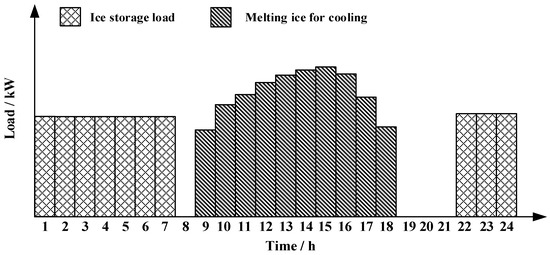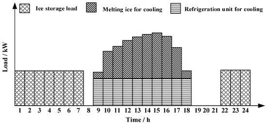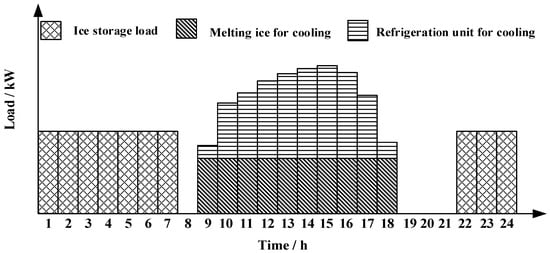 Ice storage systems can be classified into two types based on their cooling modes, namely full and partial ice storage [60]. Full ice storage utilizes off-peak electric power to produce ice at night. It completely relies on ice melting during the daytime to meet the user’s cooling demands. Partial ice storage utilizes chiller units and ice-melting cooling loads simultaneously during the daytime.