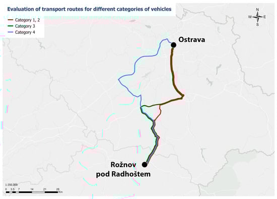 The road transport infrastructure used in this study is based on real infrastructure data from the Czech Office for Surveying, Mapping, and Cadastre. Since the model mainly focuses on freight transport, the complexity of the network was reduced by omitting irrelevant local roads that are impassable for heavy-duty vehicles. To optimize computational efficiency, municipalities with fewer than 1000 inhabitants were removed from the database, and multiple points of interest were added, resulting in a database of 1132 points.