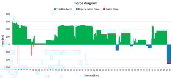 Each transport system element is characterized by several parameters, such as operating weight, dimensions, number and type of tires, and investment or annual service costs. Motor vehicles have also defined fuel/energy consumption based on manufacturers’ specifications or research. Locomotives in the database are detailed not only by general parameters (e.g., weight, number of axles, traction force) but also by specific traction characteristics for each traction system, essential for speed profile calculations.