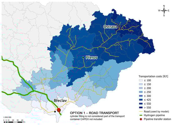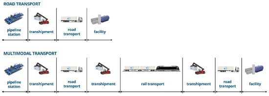 In the Czech Republic, approximately 125,000 tons of hydrogen are produced and consumed annually, primarily from fossil sources [4]. Most of the produced hydrogen is used in the chemical industry, typically at the site of its production. Occasionally, pilot projects involving hydrogen-fueled trucks and buses are carried out in various cities, and six filling stations are currently in operation in the Czech Republic. Among these stations, three are public, the other three are private. In addition, another two stations are under construction [5]. These stations rely on road transport for hydrogen delivery in gaseous form, but further details on the supply chain remain unavailable. Considering the potential of hydrogen as a clean energy source, its demands are expected to increase within the Czech Republic. Hydrogen transportation within shorter distances would become critical to ensure the overall sustainable use of hydrogen.