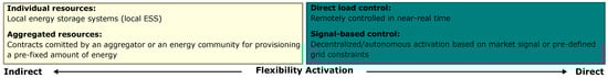 13]. On the other hand, indirect activation of flexibility refers to pre-contractual conditions between energy retailers and aggregators or individuals with non-firm connections, or flex-tariffs. Although there is a network code proposal [