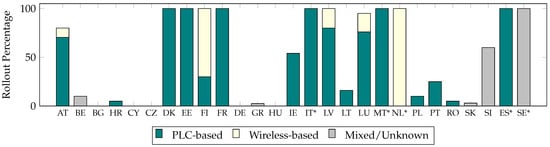 3], but additional regulation is still required in the EU. The vast majority of EU-28 countries selected PLC technology for their first-generation smart metering rollout, as shown in