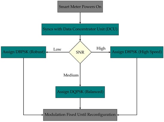 Table 3: Noise mitigation in PRIME v1.3.6 is primarily implemented at the first two layers of the OSI model—the physical (PHY) and data link (MAC) layers—directly impacting signal treatment and media access behavior. At the PHY layer, Orthogonal Frequency Division Multiplexing (OFDM) spreads the signal across 97 subcarriers to avoid narrowband interference, while modulation selection (DBPSK, DQPSK, D8PSK), as shown in