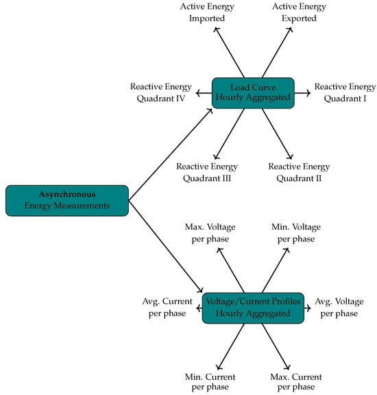 Figure 12. These asynchronous measurements refer to pre-programmed tasks: smart meters are designed to upload hourly aggregated load curves daily for each end-customer. However, they can also use the same asynchronous method to provide voltage and current profiles, which can be used not only for additional calculations (e.g., model-less power flow analysis based solely on voltage measurements from last-mile buses) but also as a data source for other types of analysis.