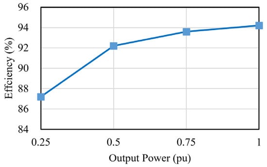 The efficiency of the system is measured by the HIOKI 3390 power analyzer, and the results are shown in Figure 12. Under rated load conditions, the peak efficiency reaches 94.2%.