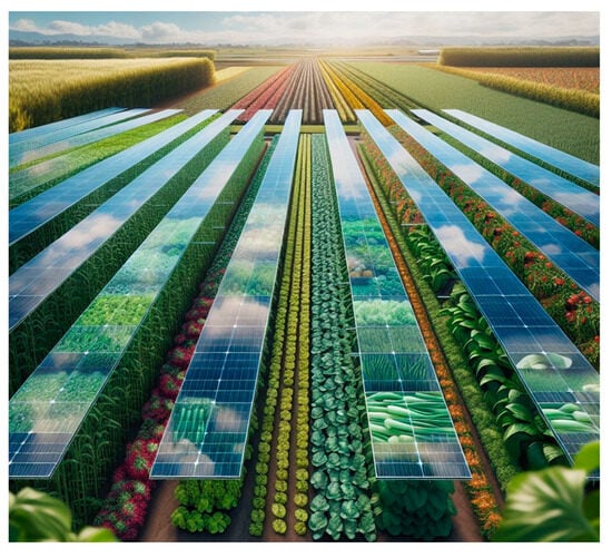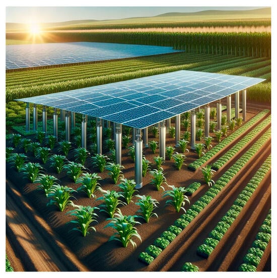 - Gorjian, S.; Bousi, E.; Özdemir, Ö.E.; Trommsdorff, M.; Kumar, N.M.; Anand, A.; Kant, K.; Chopra, S.S. Progress and challenges of crop production and electricity generation in agrivoltaic systems using semi-transparent photovoltaic technology. Renew. Sustain. Energy Rev. 2022, 158, 112126. [Google Scholar] [CrossRef]