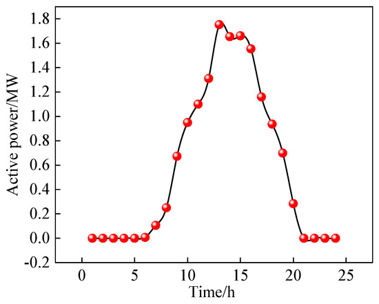 The 24 h original PV active power output curve (each PV) is shown in Figure 6.