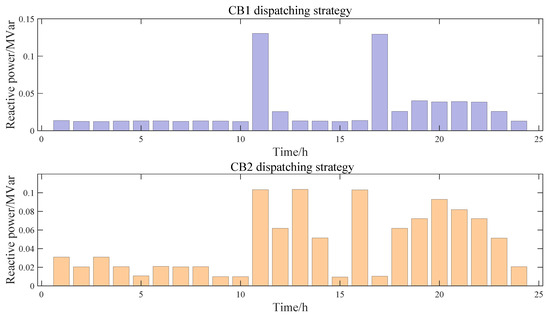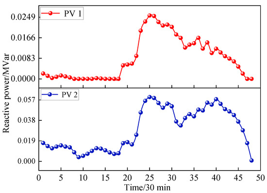 The PVs reactive power output dispatching strategies are shown in Figure 11.