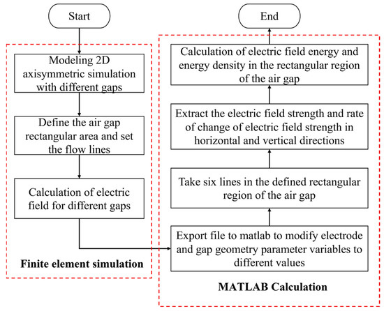 The finite element simulation model files were exported to MATLAB software (version R2023a). The calculation process for extracting electric field features is shown in Figure 3, with the specific steps for calculating electric field eigenvalues in MATLAB as follows: