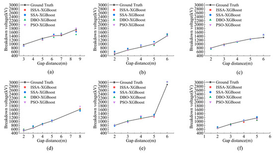 In summary, the breakdown voltage predictions made by the ISSA-XGBoost model were closer to the actual values, and its predictive performance was markedly superior to that of the traditional machine learning models.