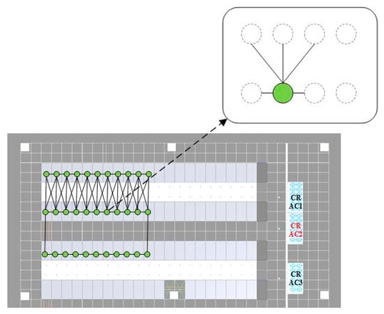 To meet the requirements of graph neural networks, the computer room was modeled by creating four graph models based on the operation of four CRAC units (ACUs) within the room. Each graph model selects the target cabinets associated with one CRAC unit as vertices. Taking the graph model composed of ACU2 as an example, as shown in Figure 11, the temperature of each cabinet in an enclosed space is most significantly influenced by the five nearest surrounding cabinets. Therefore, each cabinet is connected to its five nearest neighboring cabinets to form edges. If two cabinets are not located within the same enclosed aisle, as illustrated in the figure, the cabinets at the edges of the graph model are connected to ensure the connectivity of the graph model.