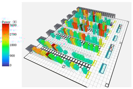 Given that the data center computer room adopts a modular design with identical spatial layouts across all rooms, it is sufficient to study the physical model of a single room. However, the distribution of servers and their load conditions within the room is not fixed. To ensure the model’s general applicability to data centers, Monte Carlo sampling (Markov Chain Monte Carlo, MCMC) was employed to randomly assign power distributions ranging from 0 kW to 4 kW to the cabinets. Generating data samples in this manner avoids deviations from real-world scenarios while ensuring good variability in cabinet loads [15]. A total of 1000 distinct combinations were generated, representing 1000 possible cases of load distribution within the computer room.