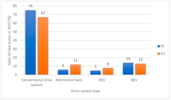 Sales of new buses in Poland and the EU in 2022. Source: authors’ own compilation based on [13].