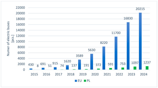 Number of electric buses in EU and Poland. Source: authors’ own compilation based on [14].