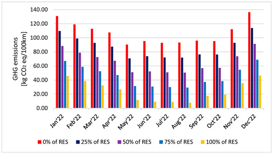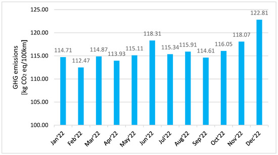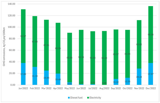 Greenhouse gas emissions from 12 m electric buses broken down by months of 2022. Source: authors’ own compilation.