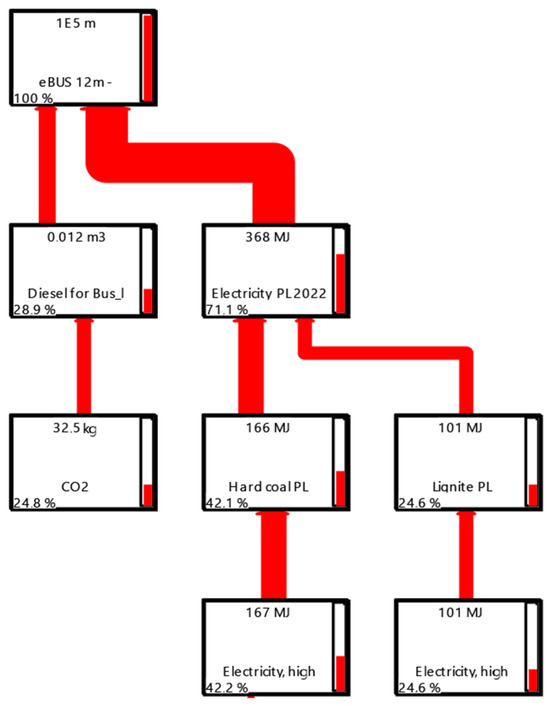 The system boundary set for the analysis of the electric buses comprised electricity production considering all energy sources in Poland. The percentage share of individual energy sources in 2022, assumed with reference to the data compiled for electricity production by Energy Forum in a document entitled Energy Transition in Poland—2023 edition [33]—as provided by Agencja Rynku Energii S.A. in 2023 [34], has been summarised in Table 3.