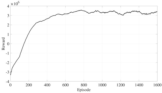 During the training process, the DRL model is updated once per episode with a batch of samples. The reward for an episode is the sum of rewards for all samples in the batch. As shown in Figure 4, the reward for each episode continuously increases and converges to a relatively high reward value after approximately 600 episodes.