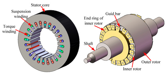 - Ye, X.; Yang, Z.; Zhang, T. Modelling and performance analysis on a bearingless fixed-pole rotor induction motor. IET Electr. Power Appl. 2019, 13, 251–258. [Google Scholar] [CrossRef]