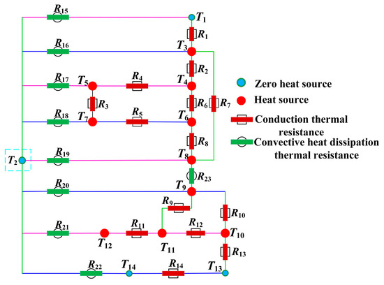 - Chen, M.; Zhuang, W.; Deng, S.; Zhu, C. Thermal analysis of the triple-phase asynchronous motor-reducer coupling system by thermal network method. Proc. Inst. Mech. Eng. Part D J. Automob. Eng. 2020, 234, 2851–2861. [Google Scholar] [CrossRef]