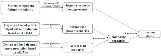 - The renewable energy and load scenarios are combined with the system component outage events to generate system states and their corresponding probabilities.