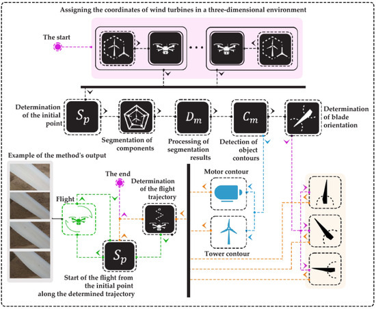 Against this backdrop, unmanned aerial vehicles UAVs have emerged as promising tools to enhance wind turbine inspection procedures [10]. By equipping UAVs with high-resolution cameras and thermal sensors, operators gain comprehensive views of turbine components without endangering human inspectors [11,12]. Yet, many early UAV-based techniques either rely on manual piloting or use simplistic, static flight paths [13] that fail to adapt to real-time factors such as variable blade pitch angles and gusting winds [14].