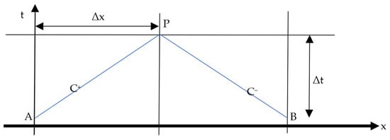 The method of the characteristics is convergent (“stable”) provided that the spatial grid points and the discretization of the time axis are chosen so that the Friedrichs–Courant–Lewy [37,38] equation is satisfied: