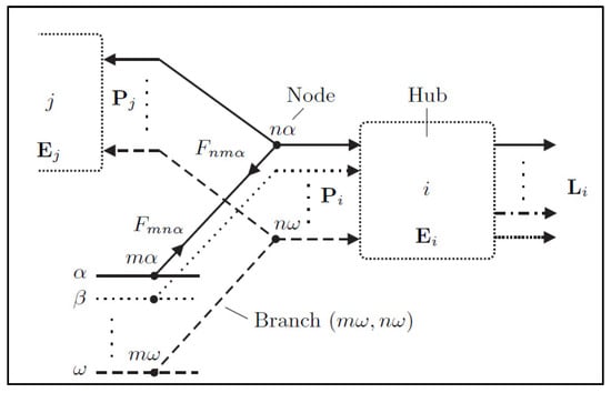 The equations system constituted by (1) and (2) is non-linear, and this can be an important drawback in executing studies over big networks (even bigger if other carriers are added) and over long-term time intervals (which is typical, e.g., for grid planning analyses). On the other hand, the longitudinal reactance of the transmission networks lines is usually much bigger than the relevant resistance (for 150 kV networks, this ratio can be around 1.7, whereas for 380 kV networks, the same can increase up to 10). In this hypothesis, since the transversal (shunt) impedances of the reactive type, they do not influence active power transits, and the expressions for active and reactive power calculation are decoupled. Thus, considering only Equation (1) for active power calculation, it becomes: