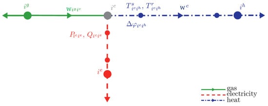 The above considerations clarify the need to adopt a Multi-Energy (ME) approach in the simulation of the energy grids [6]. In particular, in this paper, the focus is on static multi-energy models, useful either for calculating the network flows once the injected and withdrawn powers are known (load flow analysis) or for optimizing the system dispatch or the planning of new grid infrastructure. All such models have in common the static description of the different carriers (as opposed to the one oriented towards studying transient phenomena) and the fact that very often they imply either the solution of a system of equations (for load–flow analysis) or the resolution of optimization systems that minimize operative system expenditures (OPEX, very often in the sense of pure dispatching costs) or the total system expenditures (TOTEX, meant as the sum of OPEX and CAPEX, capital expenditures) for investing in new assets to be deployed. The peculiarity of these models, if applied in an ME context instead of a single energy carrier, is that the dimension of the problem is considerably larger. This means that particular attention should be paid on one side to finding out the simplest schematization of the single components of each carrier (e.g., preserving the linearity of the models becomes nearly imperative) and on the other side to utilizing opportune solving algorithms fit for managing very large systems, and most likely utilizing modern decomposition techniques (like Benders’ decomposition [7]).