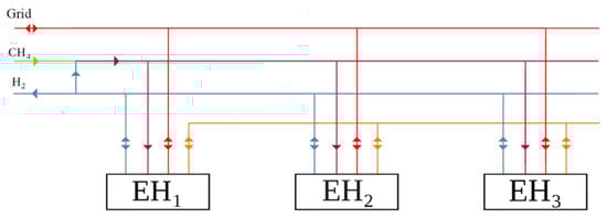 Static ME models can be very useful for the system operators of the different grids to analyze the efficacy of flexibility measures across the energy carriers, and for the national regulatory authorities to assess the possible technical–economic impact of new regulatory provisions. The importance of adopting a Multi-Energy (ME) approach in dispatch scenarios and planning studies is also reflected in numerous policy documents, which clearly call for the adoption of a multi-carrier approach. Just to mention a couple of them, at the European Union level, the European Commission [8] published in 2020 the Communication “Powering a climate neutral economy: an EU Strategy for energy system integration” [9]. In this document, we find “Energy system integration—the coordinated planning and operation of the energy system ‘as a whole’, across multiple energy carriers, infrastructures, and consumption sectors—is the pathway towards an effective, affordable and deep decarbonisation of the European economy”. The more recent document “Electricity infrastructure development to support a competitive and sustainable energy system—2024 Monitoring Report” [10] published by the European Union Agency for the Cooperation of Energy Regulators (ACER, [11]) invites grid developers “to extend the use of multi-vector scenarios to grid development planning at the national level and ensure consistency between EU TYNDP and national scenarios”. Finally, the European Network of Transmission System Operators for Electricity (ENTSO-E, [12]) and the European Network of Transmission System Operators for Gas (ENTSOG, [13]) have recently started to publish joint electricity–gas scenarios to support the vision of the Ten-Year-Network-Development-Plan 2024. These scenarios are publicly available on the web [14]. While introducing such scenarios, ENTSO-E and ENTSOG declare “The scenarios evaluate the interactions between the gas, hydrogen and electricity systems, vital to delivering the best assessment of the infrastructure from an integrated system perspective”.