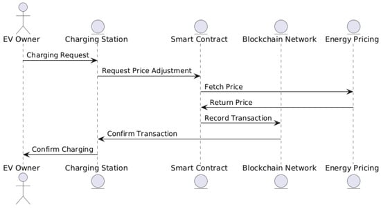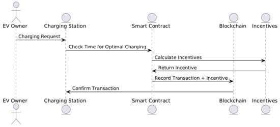 This diagram illustrates the integration of blockchain technology within electric vehicle (EV) charging networks. The process begins when the EV owner requests to charge their vehicle and takes responsibility for initiating the transaction. Upon receiving the request, the charging station verifies its validity, confirms the EV’s eligibility for charging, and proceeds with providing the necessary energy. The transaction is subsequently validated, and the blockchain network records essential data, including transaction details, pricing, and incentives. Smart contracts autonomously adjust pricing based on factors such as demand and Time-of-Use, in alignment with dynamic energy pricing models that reflect real-time grid demand and predefined pricing rules (e.g., Time-of-Use and Real-Time Pricing). The final step involves logging the transaction onto the blockchain, allowing for the EV owner to charge their vehicle.