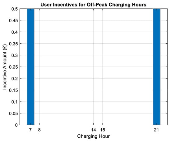 Time-of-Use (ToU) pricing is a model in which electricity rates vary depending on the time of day. The pricing structure is designed to encourage users to charge their electric vehicles (EVs) during off-peak hours when electricity demand is lower. Mathematically, the pricing model can be expressed as follows (Equation (3)):
