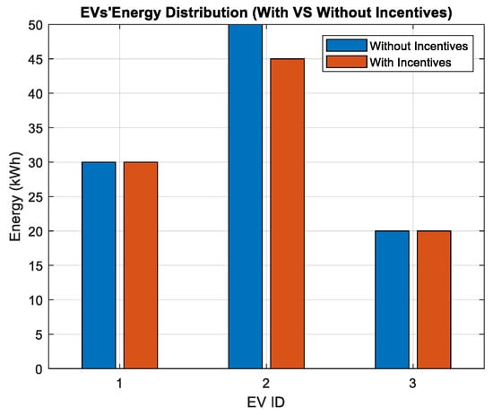 Figure 18. Energy distribution among EVs (with and without incentives).