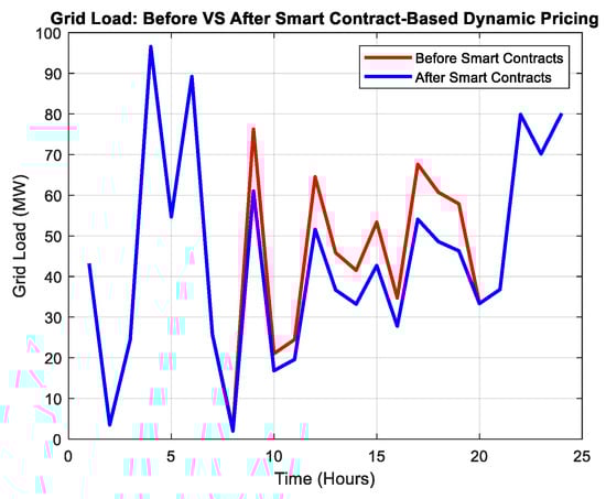 Figure 19. Grid load before and after smart contract-based dynamic pricing.
