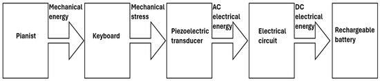 Vega-Ávila, J.E.; Anaya-Ruiz, G.A.; Román-Godínez, J.J.; Esquivel-Barajas, G.G.; Ortiz-Marín, J.; Gudiño-Valdez, R.; Aguilar-Rodríguez, H. Piezoelectric Energy Harvesting System to Charge Batteries with the Use of a Portable Musical Organ. Energies 2025, 18, 1850. https://doi.org/10.3390/en18071850