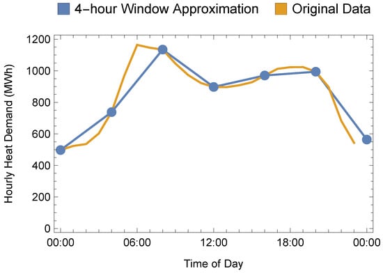 Heat demand daily profile: hourly vs. 4-hour window approximation.
