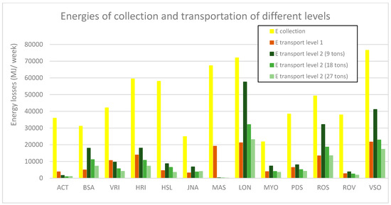 The results in Table 3 show that the municipalities with a greater availability of municipal organic waste and a big territory have a bigger percentage of losses from collection and transport level 1, and, in these cases, to diminish the energy losses, the option of having multiple digesters in the municipality can be considered.