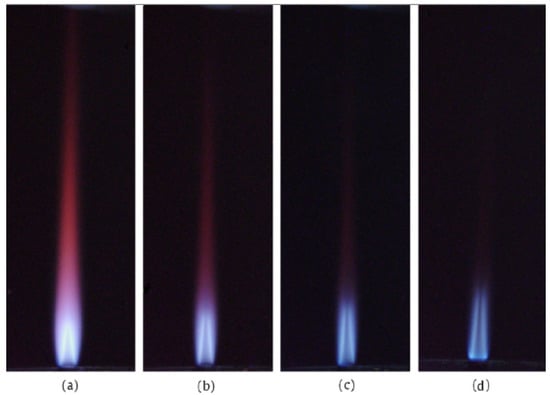 When examining hydrogen flame visibility, the equivalence ratio, denoted as , plays a crucial role. is defined as the ratio of the actual air–fuel ratio to the stoichiometric air–fuel ratio for combustion [165]. An equivalence ratio of corresponds to stoichiometric combustion, while lower values of indicate suboptimal combustion conditions. The experimental results show a clear correlation between and flame visibility: as increases, the flame becomes more visible. The experimental conditions for these observations are detailed in Figure 8. As [164] highlights, low ambient lighting enhances hydrogen flame visibility, a critical factor in practical flame detection.