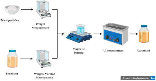 Two-step method of nanofluid preparation (Created in https://BioRender.com).