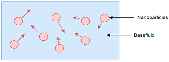 There are different kinds of nanofluid applications in various disciplines, as mentioned in the previous section. However, selective nanoparticles have the ability to significantly improve the thermal properties of selective liquids. Also, the importance of using nanoparticles is that they have the ability to improve such properties without harming the base fluids’ natural properties, which is difficult to achieve by using other bulk materials or liquids [16,17,18]. The incorporation of nanoparticles can improve the performance not only in terms of heat transfer but also in terms of energy storage, eco-friendliness, and system compactness as well. Also, a wide range of nanoparticles can be selected, considering the specific applications.