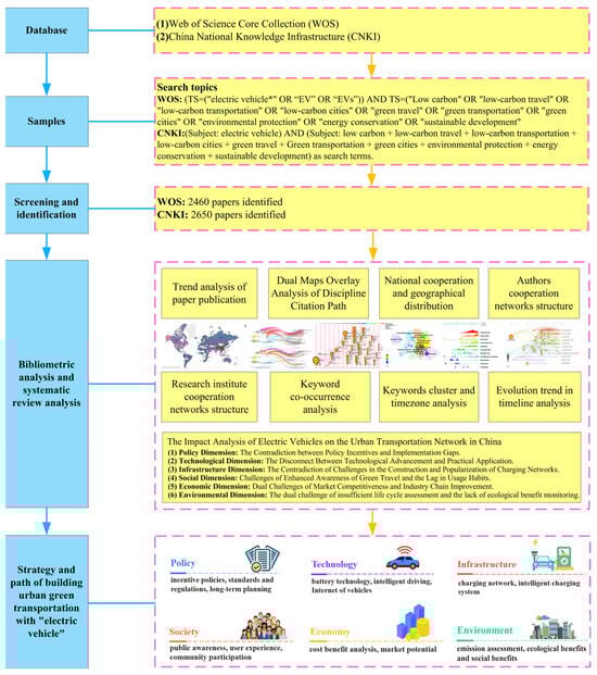 As the global ecological environment faces serious challenges and extreme climate change threatens the survival of humankind, the promotion of green development has become the focus for all countries in the world. As one of the world’s major greenhouse gas emitters, China has put forward the “twin goals” of achieving carbon peaking and carbon neutrality and is committed to promoting the green and low-carbon transformation of its cities. As the core of economic and social development, cities are the main source of carbon emissions. In response to the dual challenges of carbon emission control and traffic growth, it is particularly important to promote the development of green transportation. With the acceleration of urbanization, urban traffic pollution is becoming more and more serious. As a zero-emission transportation mode, electric vehicles have become a key way to achieve the carbon peak and carbon neutrality targets. In order to deeply analyze the research status of electric vehicles in the field of the green and low-carbon transformation of urban transportation in China and to explore the research hot spots, evolution trends, and their roles and strategies in the construction of green transportation networks, this paper uses the CiteSpace, VOSviewer, and Tableau analysis tools to review and analyze the 2460 articles and reviews in the Web of Science Core Collection (WOS) and 2650 articles and reviews in the China National Knowledge Infrastructure (CNKI), including the “publication volume and publication trend”, “subject citation path”, “countries cooperation and geographical distribution”, “author cooperation and institution cooperation”, “keyword co-occurrence and keywords clusters”, and the “evolution trend of research hot spots in timeline”. The results show that: (1) Since 2010, the research focus on electric vehicles has gradually increased, and especially in the past three years, the number of such publications has increased significantly. (2) China holds the lead in research output regarding electric vehicles and related fields, but its international cooperation needs to be strengthened. (3) In recent years, the research has focused on “energy transformation”, “energy-saving technology”, “carbon emissions”, “battery recycling”, and other relevant topics. The promotion and development of electric vehicles will continue to usher in new opportunities concerning technological innovation, policy support, and market expansion. Finally, based on the research hot spots and evolution trends of electric vehicles in the field of urban green transportation and low-carbon transportation in China, this paper discusses the key paths and strategies for electric vehicles to promote the transformation of urban transportation in China to green and low-carbon types and looks forward to future research directions. The research in this paper can provide theoretical support and practical guidance for China to promote electric vehicles, build low-carbon cities, and realize green transportation. It is expected to act as a useful reference for relevant policy formulation and academic research.