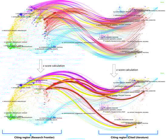 3.2. Dual-Map Overlay Analysis of Disciplinary Citation Paths