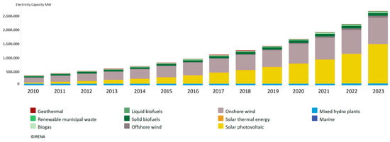 - IRENA Data & Statistics. International Renewable Energy Agency. 2024. Available online: https://public.tableau.com/app/profile/irena.resource/viz/IRENARETimeSeries/ExploreDashboard (accessed on 20 February 2025).